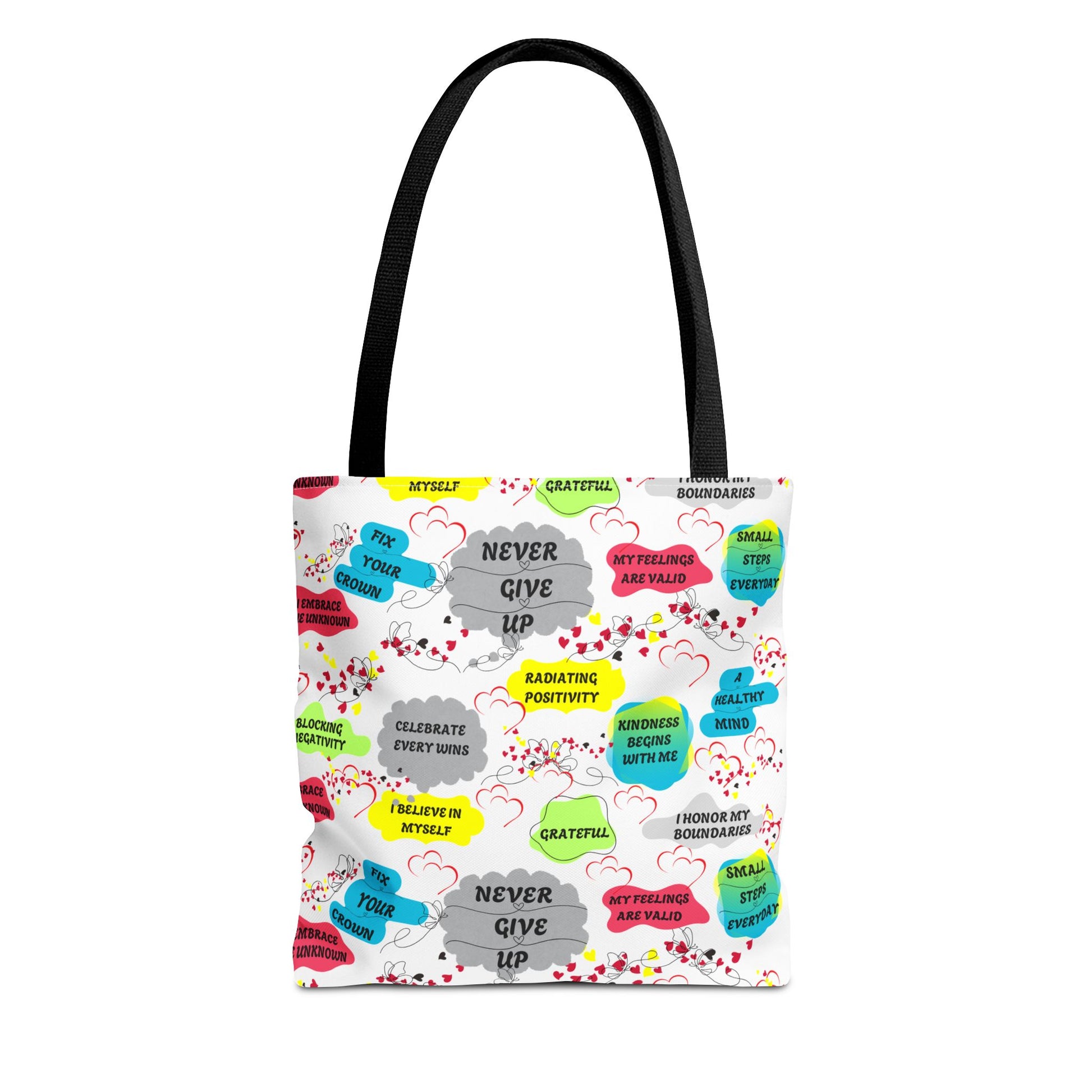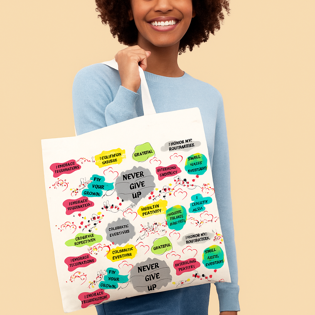 Carry positivity everywhere you go with our Tote Bag featuring uplifting affirmation quotes. Made from durable, eco-friendly canvas, this reusable shoulder bag is designed to inspire confidence while offering practical everyday use. Its spacious interior makes it perfect for shopping, books, groceries, or daily essentials, while the sturdy handles ensure comfortable wear.