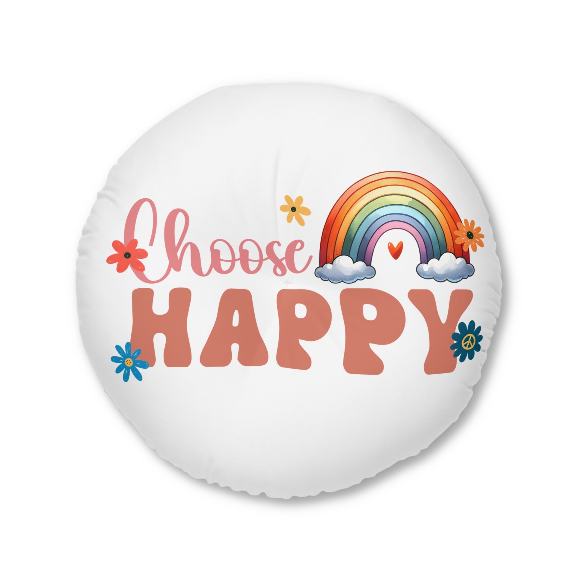 Add a custom touch to any resting area around the house with a round tufted floor pillow, which has a white stitching in the middle, that features your custom ideas. Shipped with its own filling, this floor pillow is as comfy as it is stylish. Bring it to life by adding custom artwork or catchy slogans.