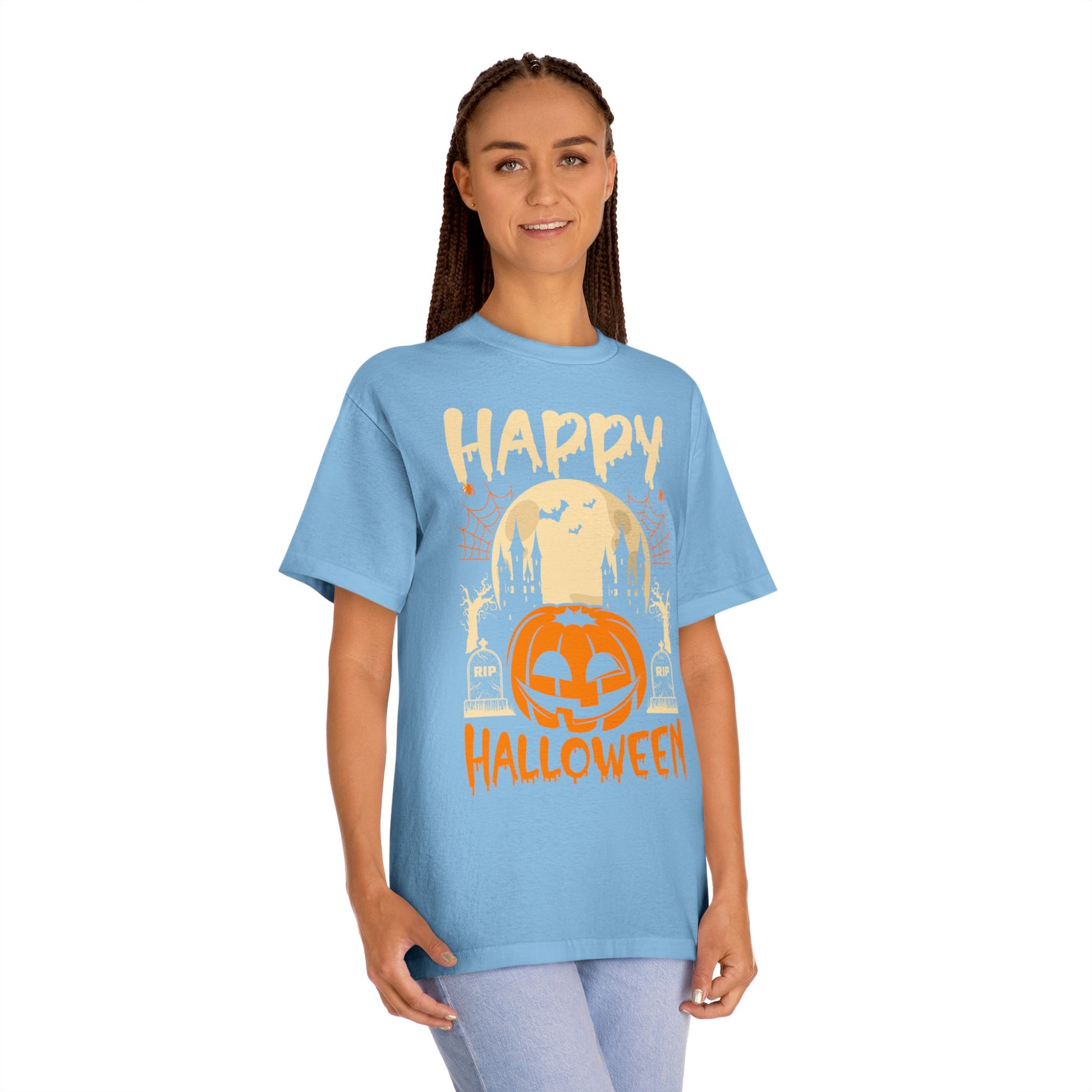Happy Halloween T-Shirt / Spooky Pumpkin Graphic Tee / Haunted Castle Shirt / Halloween Costume Top / Fun Holiday Party Outfit