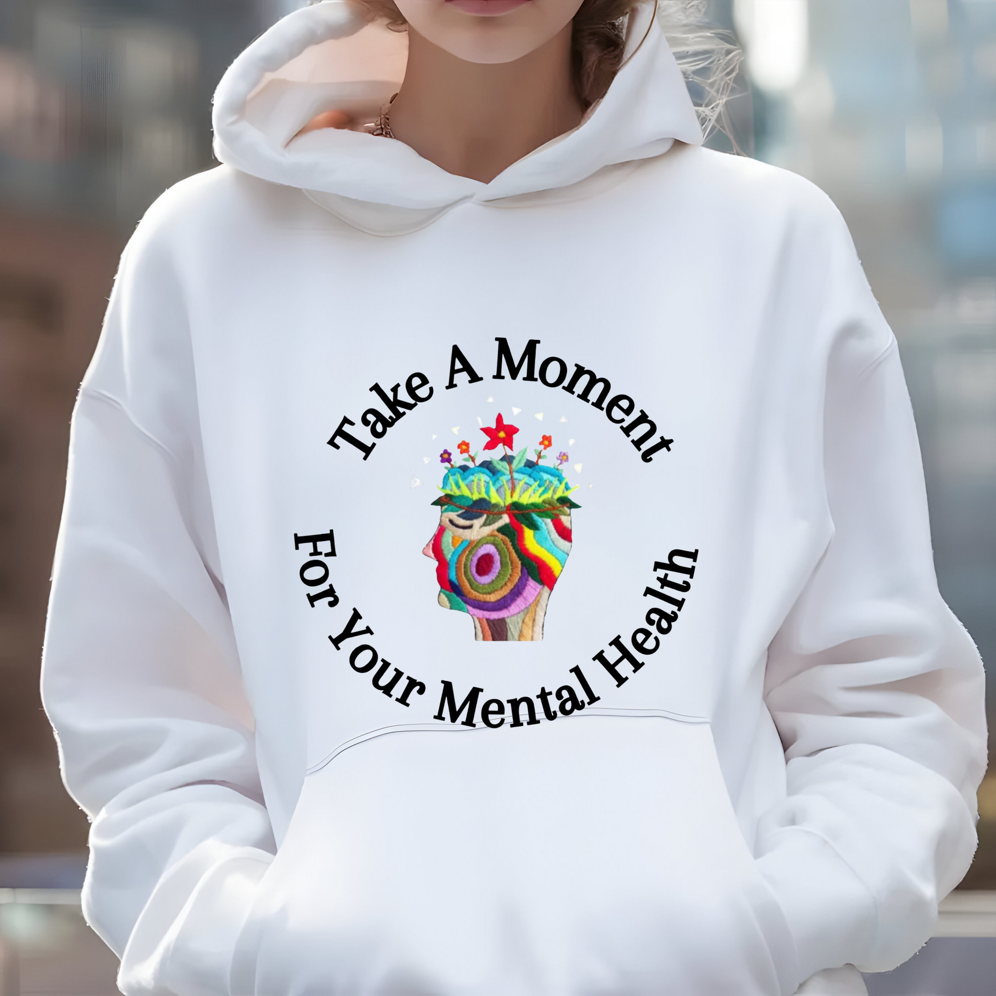 Unisex College Hoodie | Take A Moment For Your Mental Health | Motivational| Cozy Sweatshirt for Self Care and Wellness