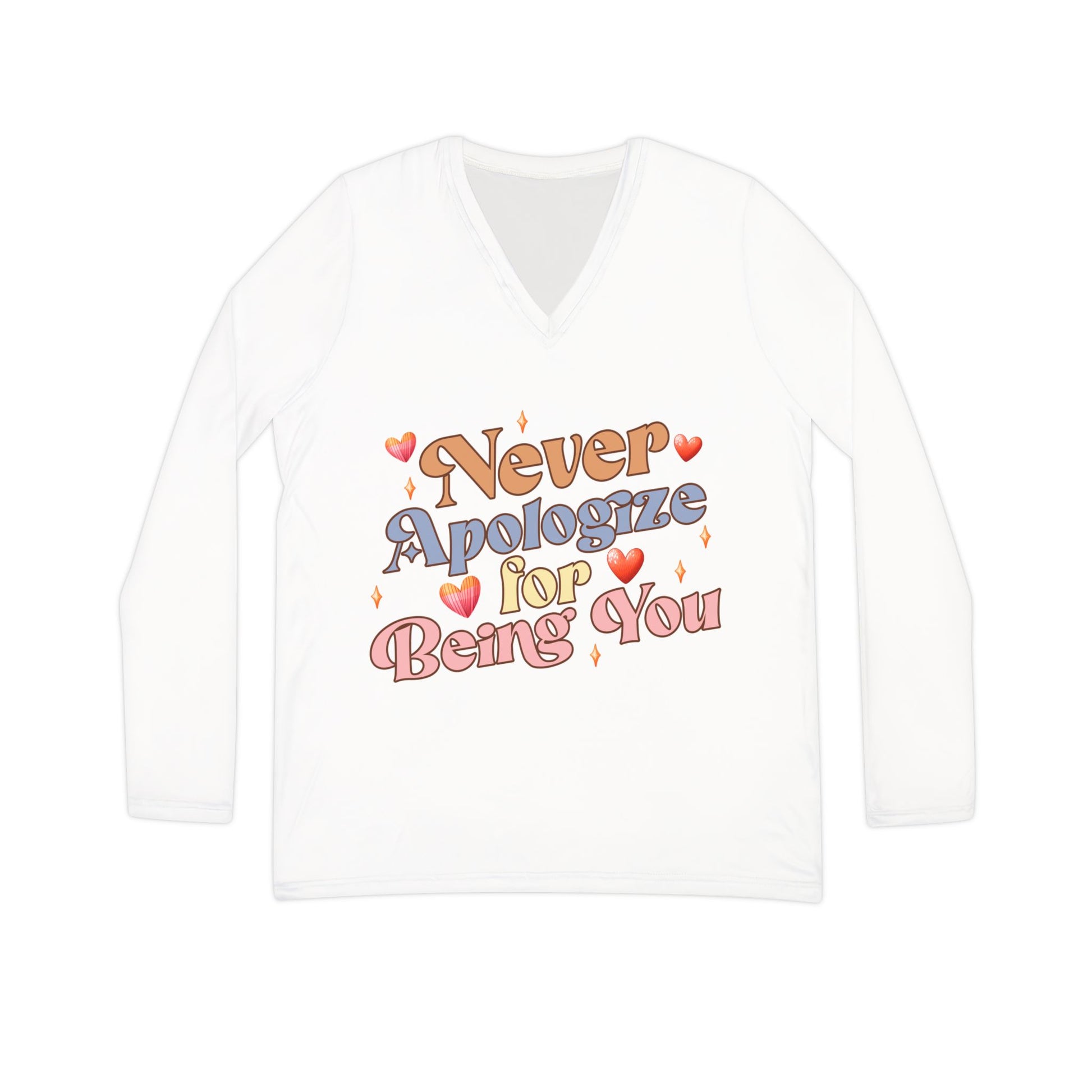 Combining the stylish v-neck cut along with a highly versatile fabric blend that's 95% polyester and 5% spandex, these long-sleeve shirts are the perfect choice for daily life. Add your art in vivid detail and create a wardrobe staple.
